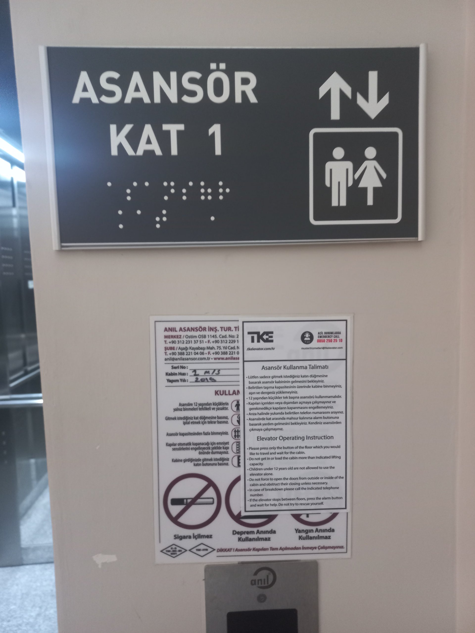 Yemekhane ve Kütüphane Arası Braille Alfabeli Asansör Paneli