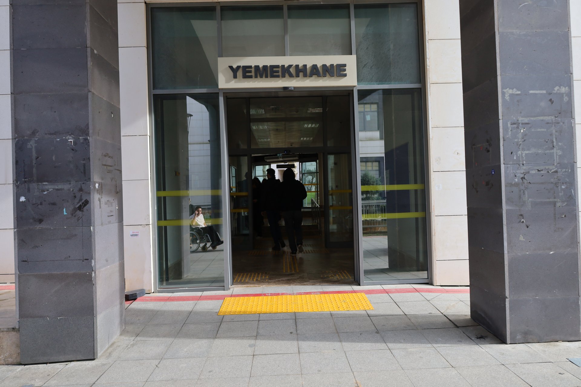 Yemekhane Girişi Otomatik Kapılar ve Görme Engelli Hissedilebilir Zemin